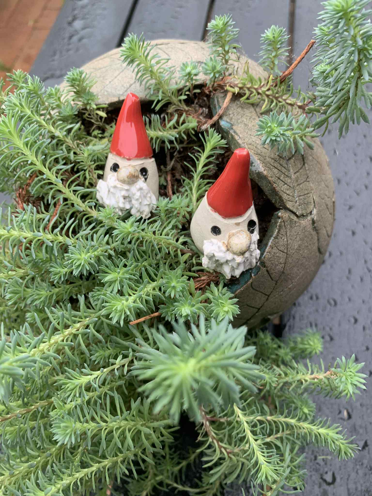 Meget lille dråbeformet nisse, der egner sig som julepynt på hylder og reoler så vel som på julebordet, når det skal dækkes.